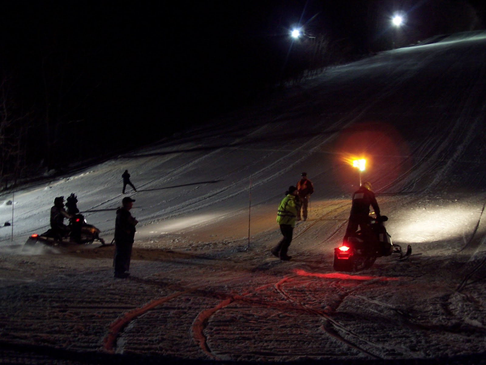 It is as it looks - drag racing up a black slope on a ski-doo. In the dark. Anyone can enter, all you need is an automatic cut-off switch on a lanyard and a snow mobile and you're away. Winner goes through to the next round. And if any of the audience are still in the process of freezing to death (as opposed to having already achieved ice block status) I'm sure they'll be very pleased on your behalf, and then they'll go back into the bar to defrost.